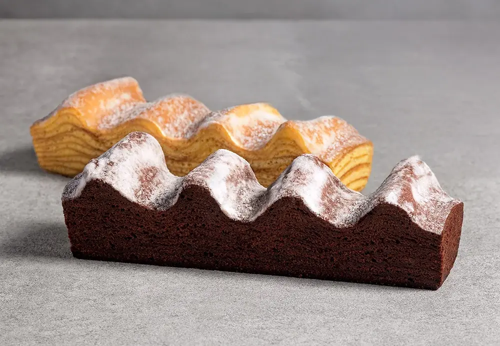 ブラウニー系の濃厚さをバームクーヘンに落とし込むため、配合と焼き工程のバランスが調整されています。外側の焼き目と内側のしっとり感が合わさることで、重量感のある一品に仕上がっています。