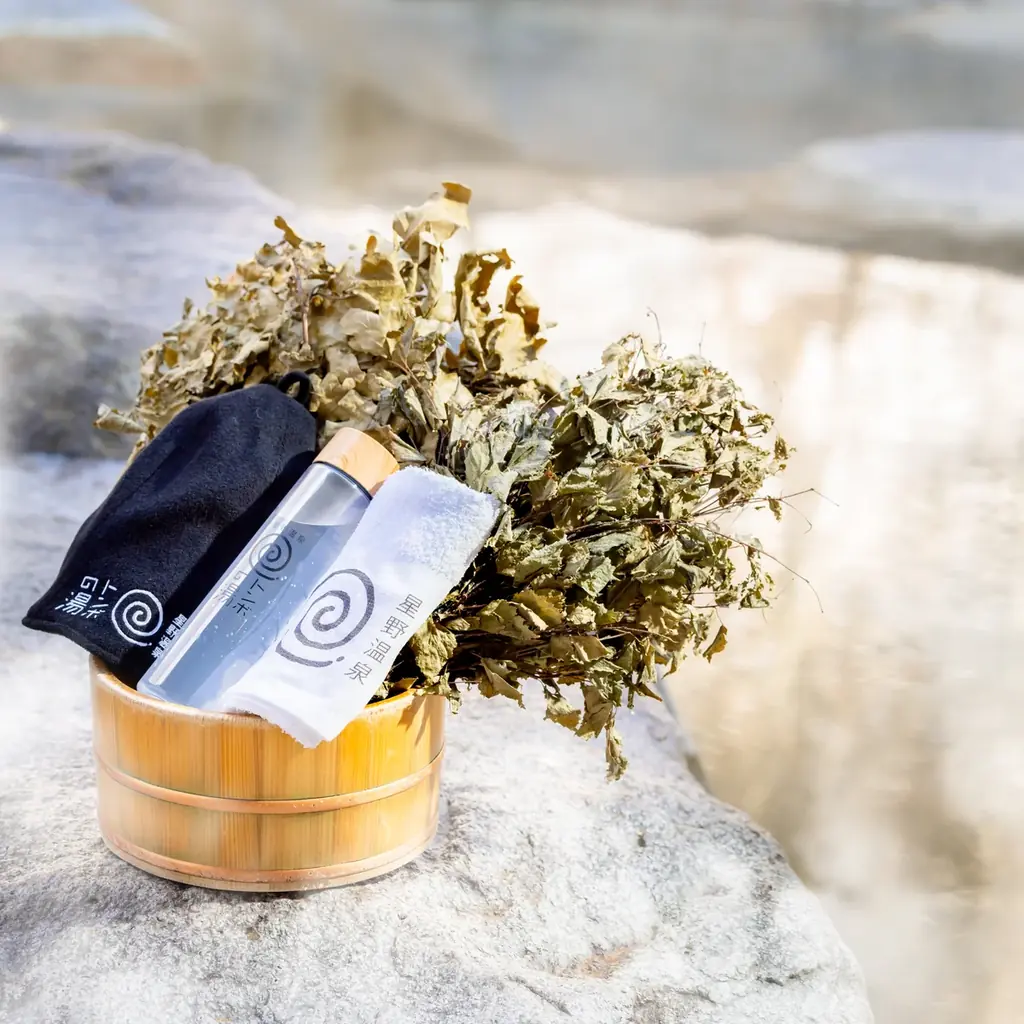 体験の中心には源泉かけ流しの温泉、湧き水の水風呂、外気浴という温浴の基本があり、それらをテントサウナやウィスキングと組み合わせることで、冬の軽井沢ならではの「ととのう」体験を設計している。