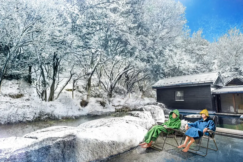 特設の外気浴スペースが露天風呂から続く広い池のエリアに設置され、氷点下になるこの時期の外気浴を体験できるようにゆったり寝そべれるチェアが配置される。定員は設けられていないため、混雑状況により順次入場となる。