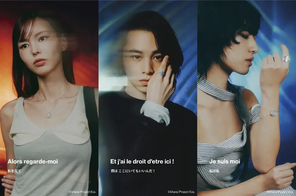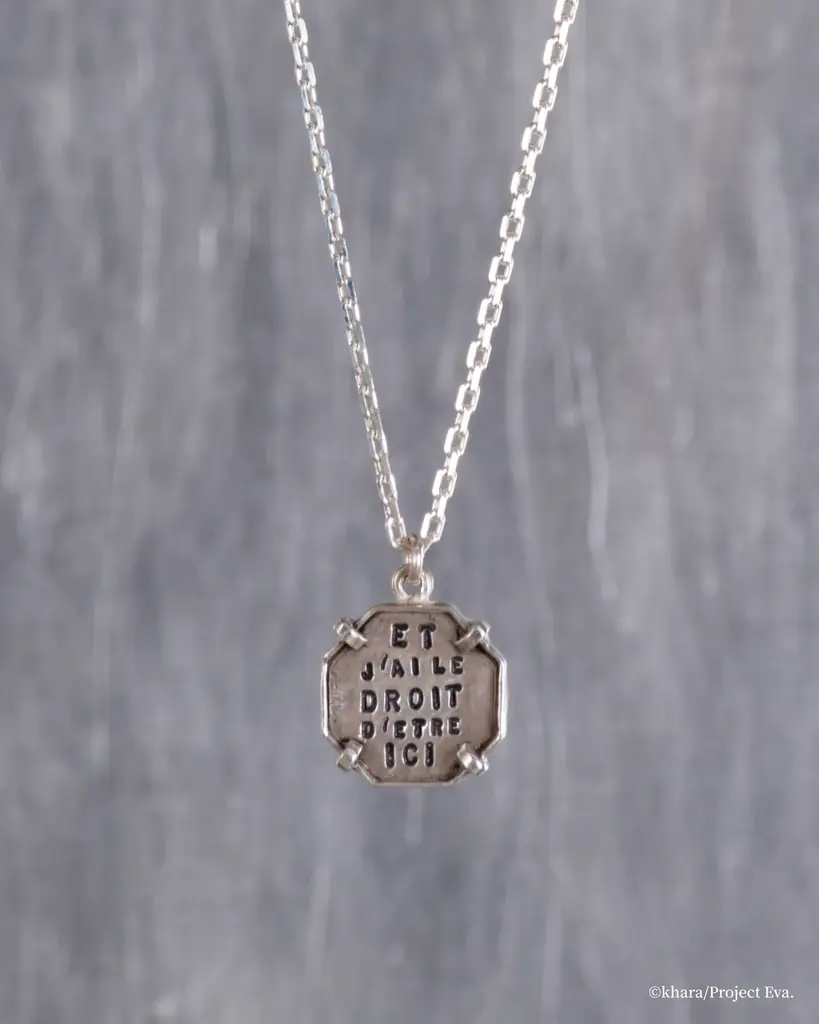 各フレーズはフレームジュエリーの内側または外側に刻印され、身に着ける人の内面と向き合う際の言葉として機能します。ブランドが重んじる「言葉をまとう」という哲学と、作品が描く存在意義の問いかけが結びついたデザインです。