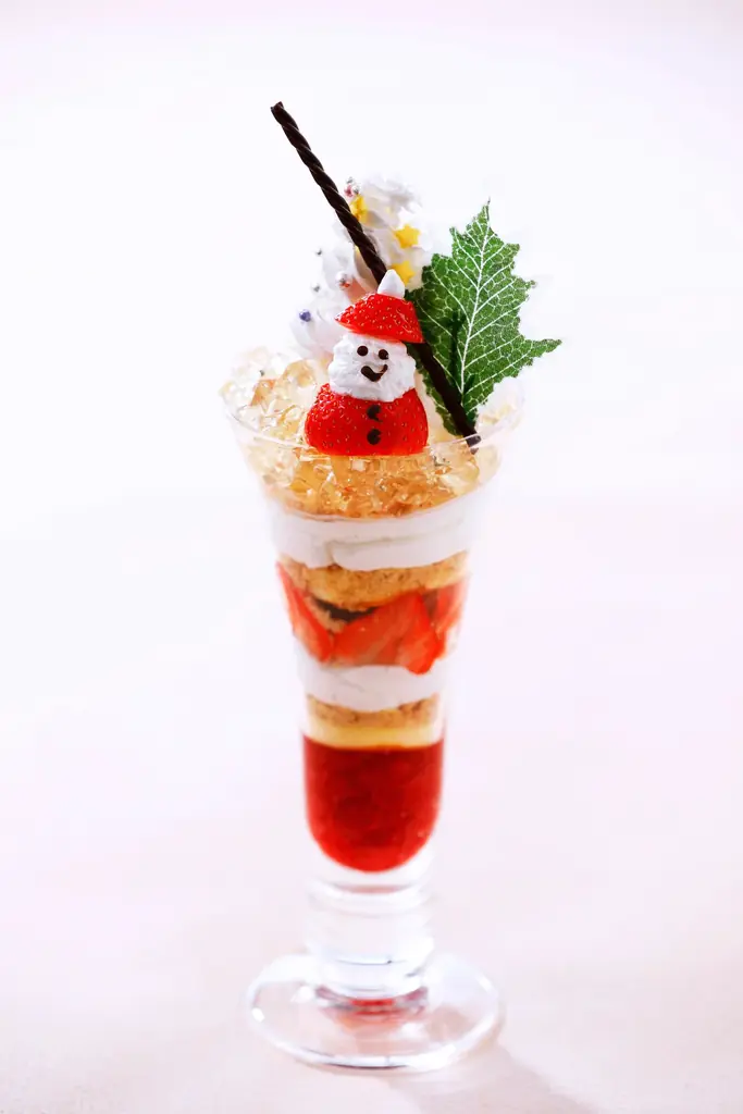 | パフェの特徴 | ケルナー種白ワインゼリー、北海道産マスカルポーネ、自家製いちごコンフィチュール。12月19日までクリスマス特別バージョンで提供 |