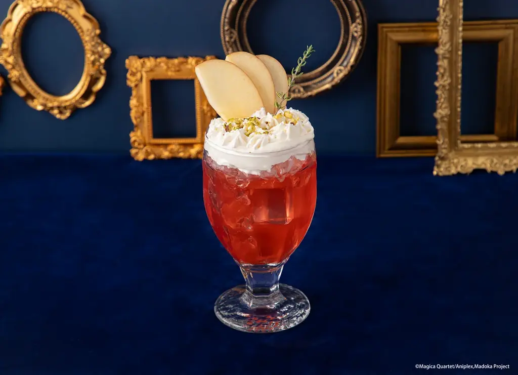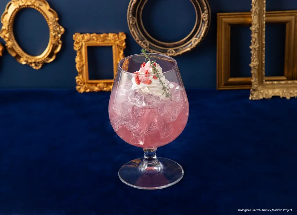 | 鹿目 まどか 夢みるピーチソーダドリンク | 税込990円 | ピーチ風味のソーダ。ホイップクリームにフリーズドライいちごやピンクのフィアンティーヌをトッピング。 |