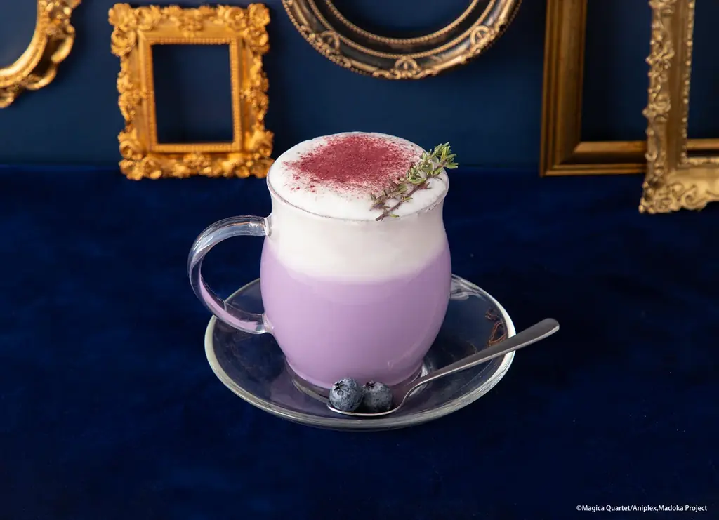 | 暁美 ほむら 静寂のブルーベリーホットドリンク | 税込990円 | ホットブルーベリーラテ。お好みでブルーベリーを追加可能。 |
