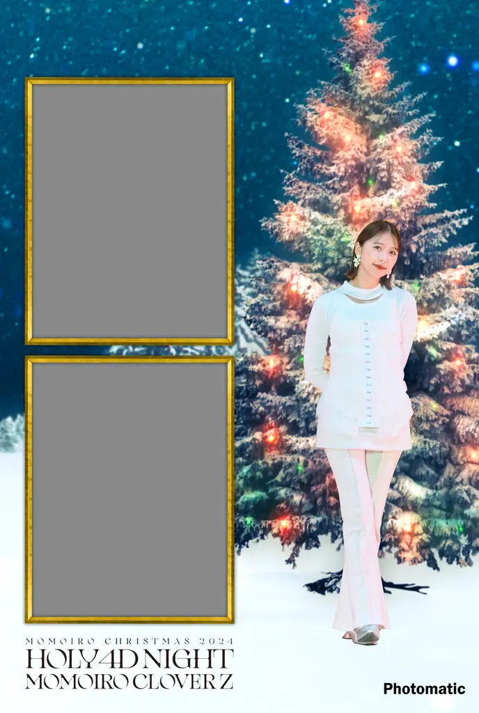 コラボ期間中は、全国11カ所のPhotomaticフォトブースにて、『ももいろクリスマス2024』仕様の限定デザインフレームが登場します。撮影はセルフ方式で、クラシックブース/マルチブースそれぞれに用意されたコラボフレームで、静止画と動画データが付いた形で出力されます。なお、当日の混雑状況に応じて整理券が配布される場合があるため、来店時にはご注意ください。
