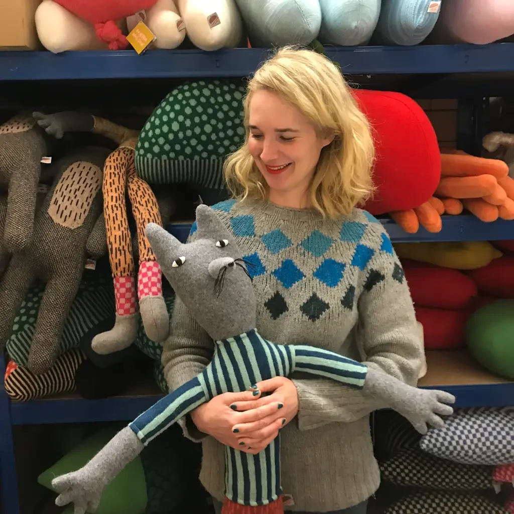 ドナ・ウィルソンはスコットランド北東の田舎で育ち、自然や家庭の温かさの影響を受けて創作を続けてきました。ロイヤル・カレッジ・オブ・アート(RCA)で学んだ後、2002年に初めてニットの縫いぐるみを制作し発表。以降、フィギュアやアパレル、家具など多方面にわたる作品を発表しています。