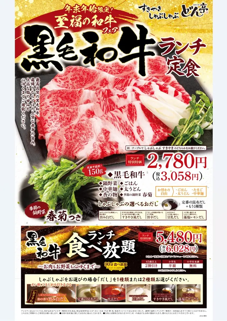 12/4開始 しゃぶしゃぶどん亭の和牛フェア、冬限定メニュー