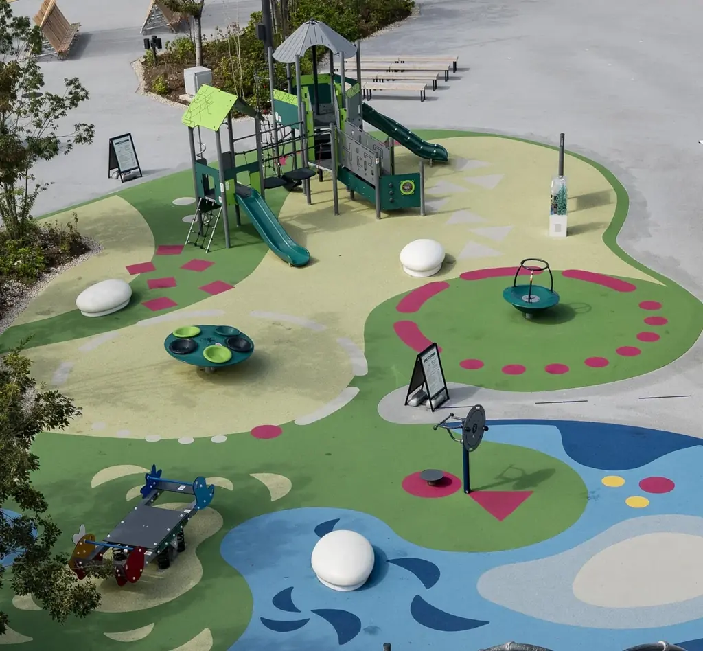 遊具は幅広い年齢層が同時に遊べる多機能性や、ユニバーサルデザインに配慮した利用しやすさを特徴としています。以下に各遊具の特徴を具体的に示します。