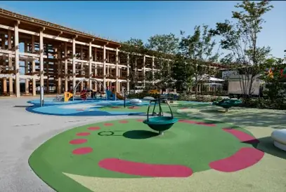 この取り組みは、万博で多くの来場者に親しまれた遊具を地域やホテル利用者にも継続して楽しんでもらうこと、そしてあそびを通じて地球環境について考えるきっかけを提供することを目的としています。遊具は株式会社ボーネルンドが万博の会場整備参加(遊具)サプライヤーとして提供したもので、今回ホテル側が導入・設置するものです。