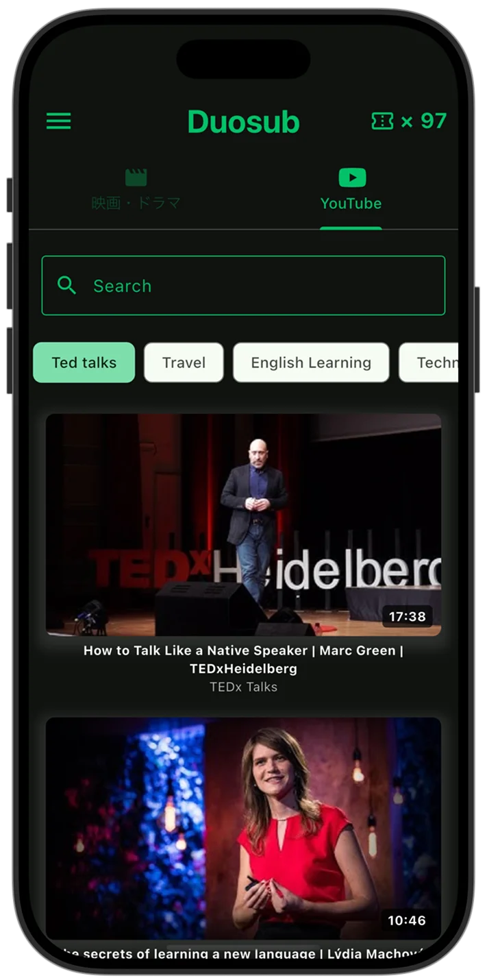 - YouTube対応:YouTubeの動画にも対応しており、短時間でもネイティブ英語に触れることが可能。