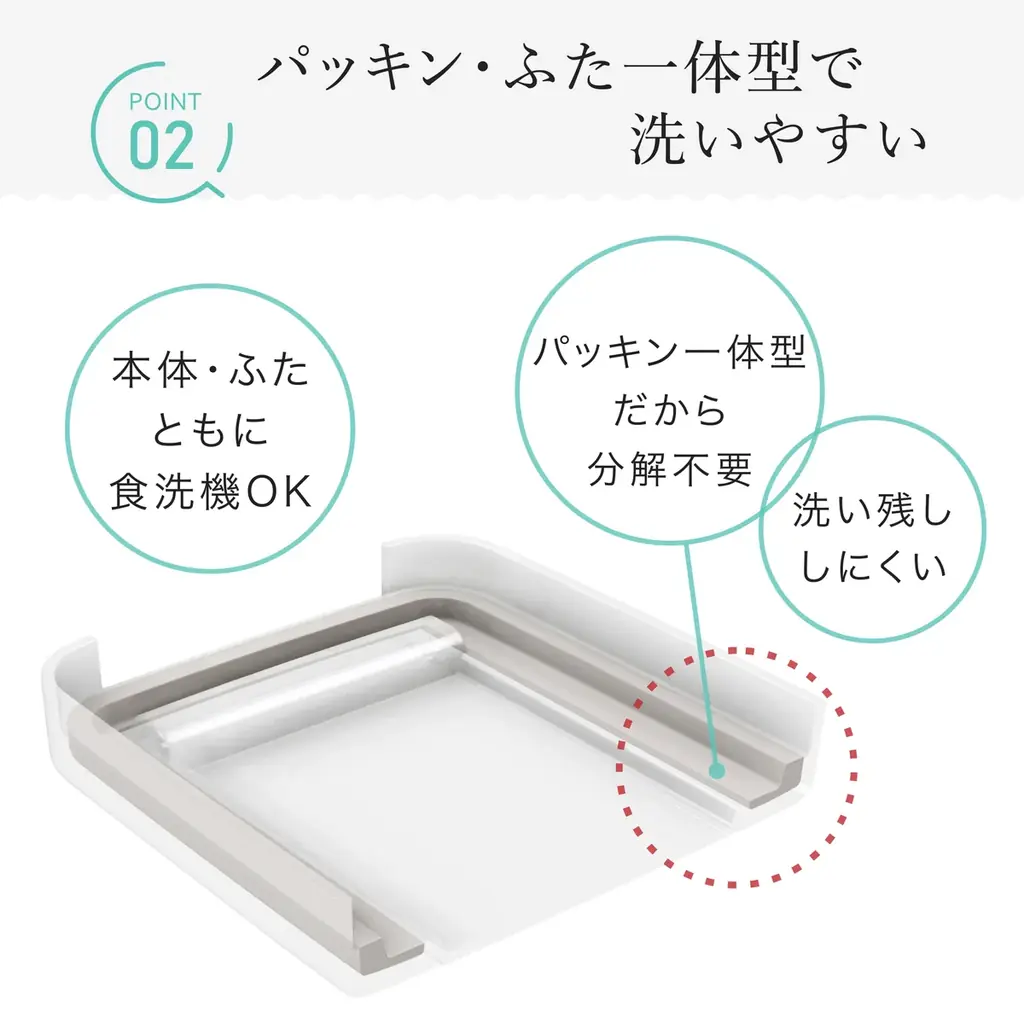 | 主な製品特長 | ふたとパッキンが一体式のイージーケア構造で洗いやすい設計 |
