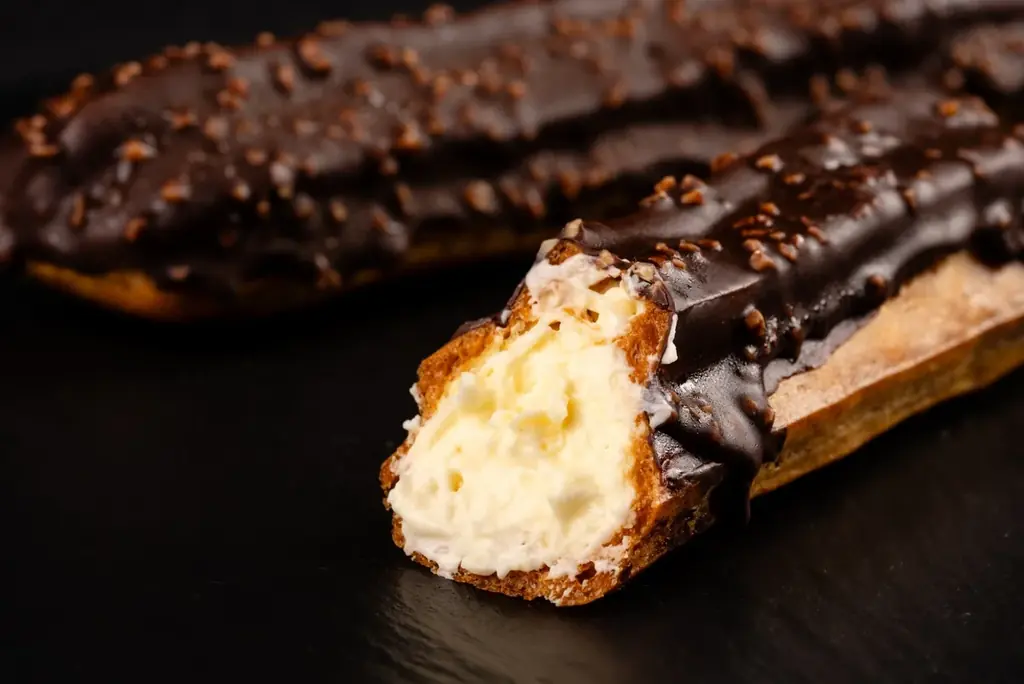 - KEN’S エクレア:約20cmの大型エクレア。バニラ香るカスタードとビターチョコレート・ナッツのトッピング。賞味期限2日。アレルゲン:卵・乳成分・小麦・大豆・アーモンド。