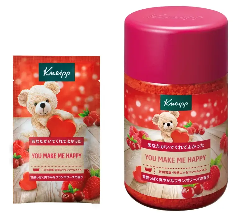 | クナイプ バスソルト フランボワーズの香り(NEW) | バスソルト | 50g 220円 / 850g 2,860円(税込) | 天然岩塩、ヨーロッパキイチゴ種子エキス(保湿)、コケモモ種子油(香り) | YOU MAKE ME HAPPY あなたがいてくれてよかった |