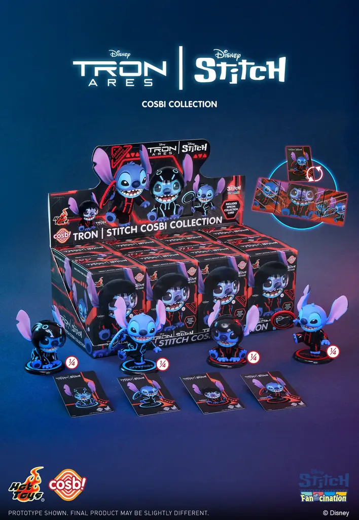 ホットトイズのデフォルメフィギュアシリーズ「コスビ」からは、『トロン』とマッシュアップした限定デザインのスティッチが全高約9〜10cmのミニフィギュアとして登場します。本アイテムはブラインドボックス仕様で、開封するまでどのデザインが入っているか分からない楽しみが用意されています。