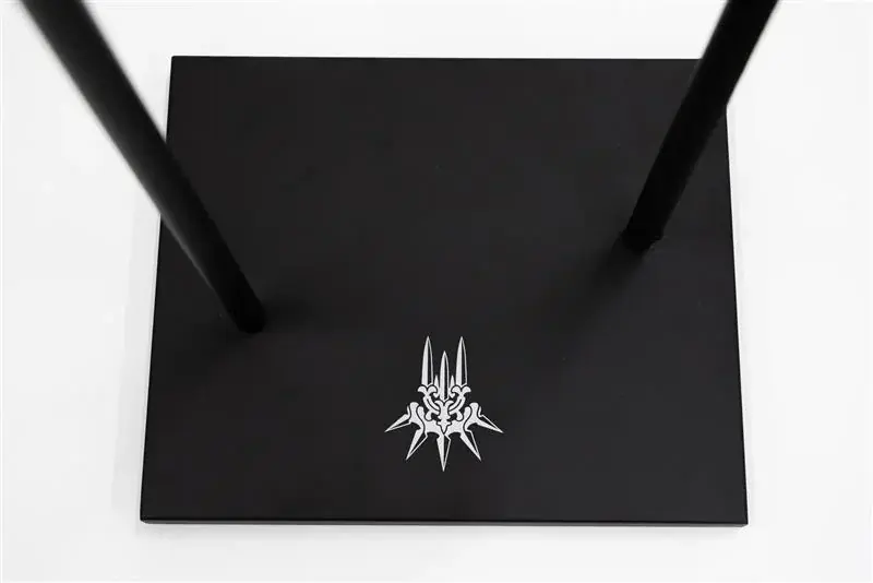 底板は鉄製で十分な重量感があり、表面にはヨルハマークが施されています。ヨルハマークは世界観の演出要素として控えめに配置され、安定性と意匠性を両立しています。