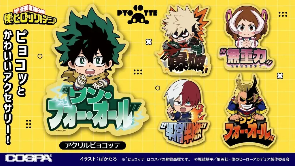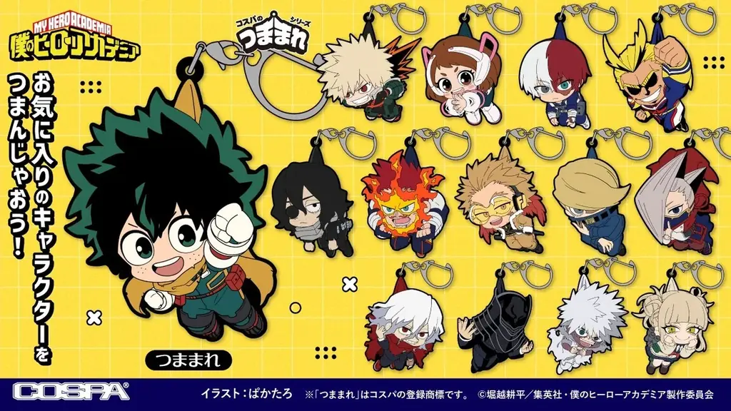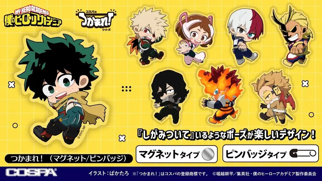 株式会社コスパは、TVアニメ『僕のヒーローアカデミア』を題材とした新作グッズ群を発表した。発表日は2025年12月3日で、同社は公式キャラクターコスチュームやアパレル・グッズの企画、開発、製造を手がける企業である。新作ラインナップにはキャラクターが“つままれて”ぶら下がるデザインや、しがみつくように見えるマグネット・ピンバッジ、アクリル製のアクセサリー、リバーシブルのアイマスクなどが含まれる。