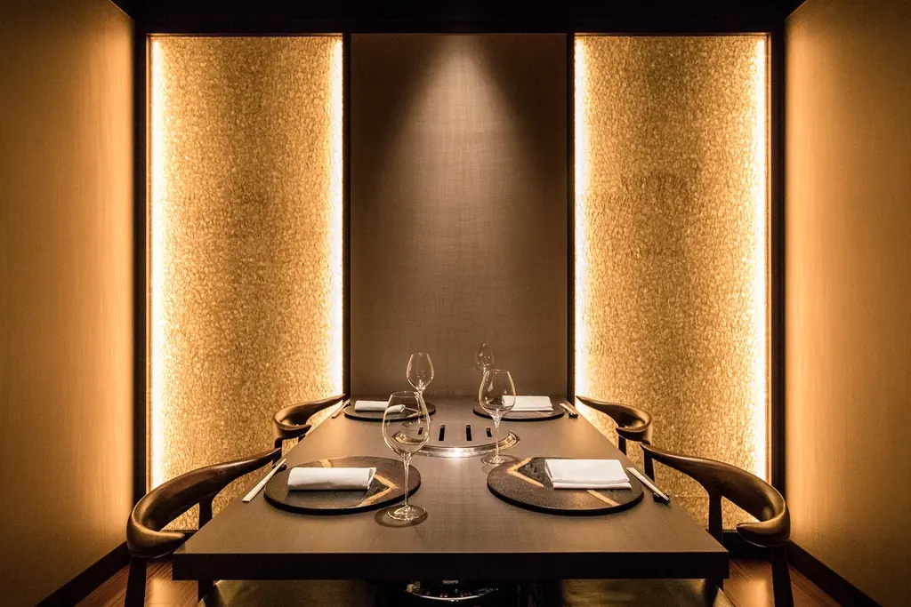 店内には4名様用、8名様用のチェアー個室があり、個室料は無しで案内しています。また、1000本以上収容するセラーを備え、ワインと日本酒のラインナップを充実させています。カウンター席は調理やサービスのライブ感を楽しめる設えです。