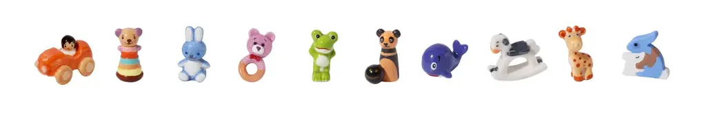 ガレット・デ・ロワには王冠とフェーヴが付属します。通常フランスの習慣に倣い中にフェーヴが隠れており、見つけた人が“王様”になるという楽しみがありますが、本商品ではフェーヴの代わりにグリオットチェリーが一粒入っている点も特徴です。フェーヴは別途かわいいTOYシリーズ全10種類が用意され、種類は選べません。