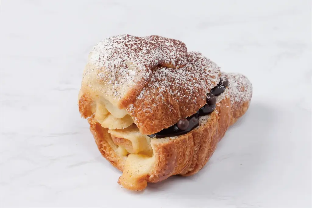 発酵バタークロワッサンにアーモンドクリームを絞って焼き上げ、さらに濃厚なチョコクリームをサンドした一品。リッチな食体験を提供します。