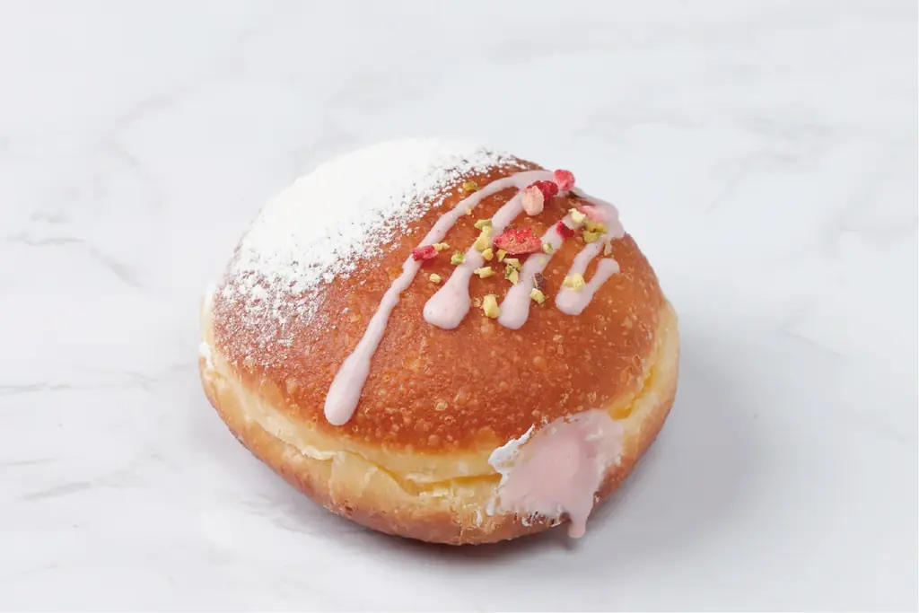 ブリオッシュドーナツ生地に甘酸っぱい苺クリームとふんわりホイップをたっぷりと絞り込んだドーナツ。ブリオッシュのふんわり感とベリーの酸味が特徴です。