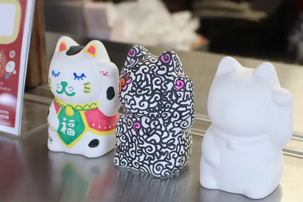 招き猫の絵付け体験は、幸福や商売繁盛の縁起物としての招き猫を自分で装飾する企画です。新年を飾る置物を手作りできるため、おみやげとしての需要も想定されます。