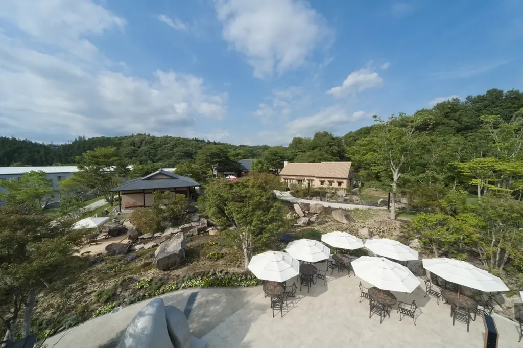 「恵那 銀の森」は約66,000平方メートルの敷地内に7つの専門店が点在し、和洋菓子、出汁、イタリアンなど多様な食の体験を提供する複合施設です。遊歩道や四季折々の草木に囲まれた園内は、散策と食を同時に楽しめる構成になっています。