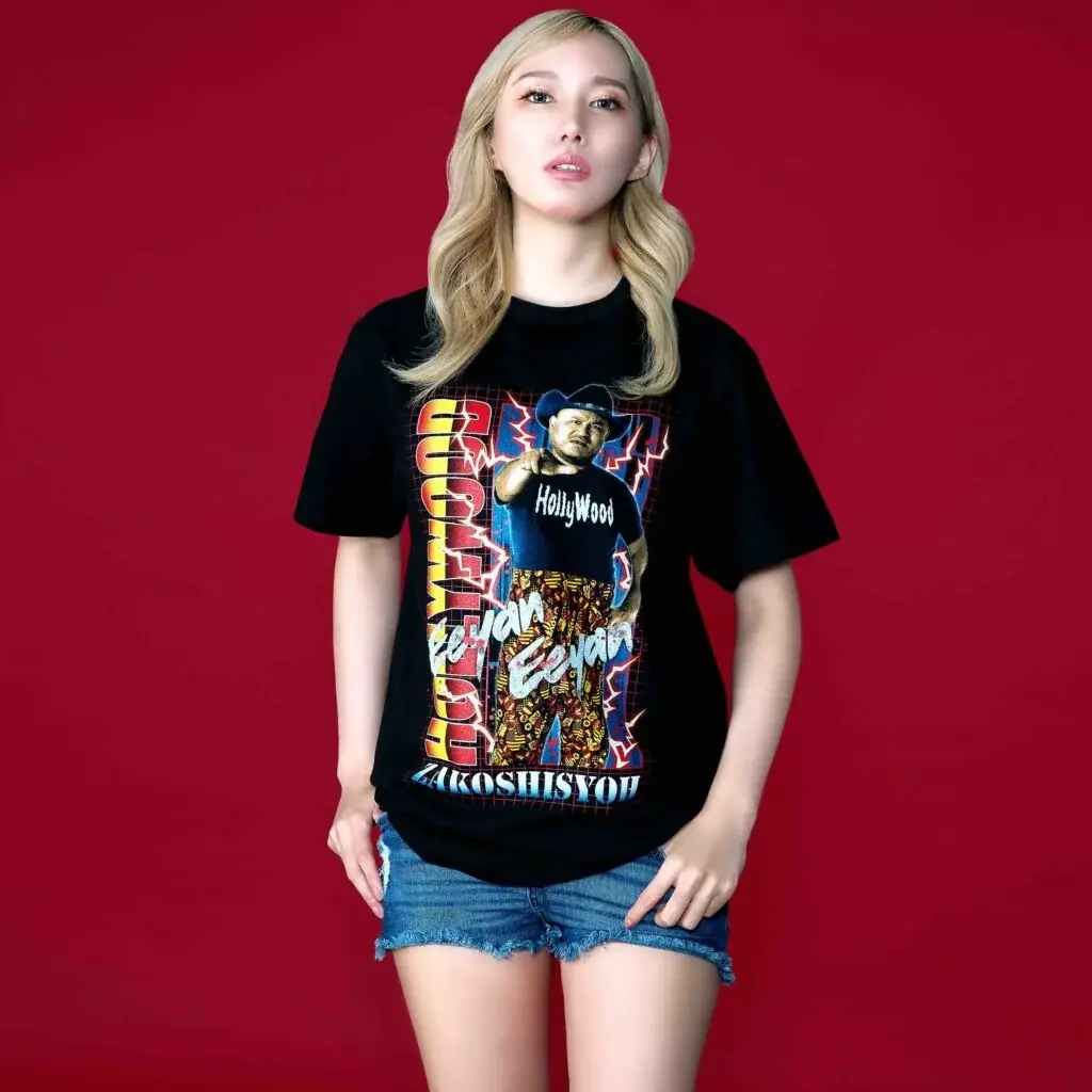 説明: ハリウッドザコシショウの「ええやんええやん」Tシャツ。極彩色の極厚シルクスクリーンプリントを採用し、ザコシショウ好みのアメリカンプロレス仕様のデザインを特徴とするアイテムです。