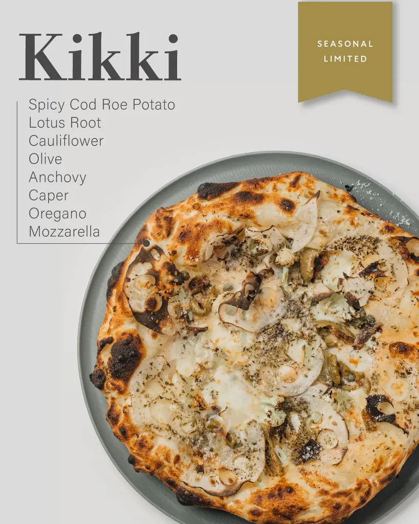 | キッキ(Kikki) | ¥2,600 | 明太子ポテト、蓮根、カリフラワー、オリーブ、アンチョビ、ケイパー、オレガノ、モッツァレラ(季節限定) |