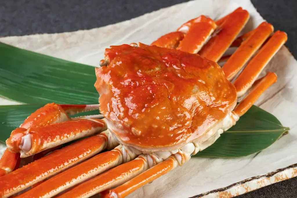 - ズワイガニの姿蒸し。一人前は蟹一杯(約600g)が提供されます。