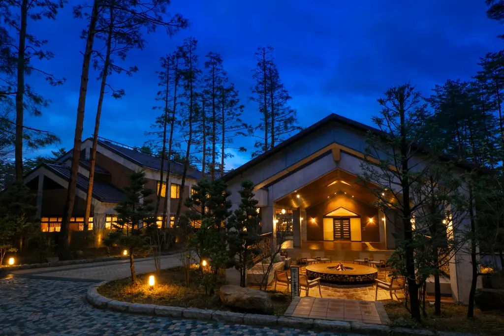 宿泊客は温泉での入浴や森林浴、安曇野平の美術館巡り、わさび田観察、北アルプスを望むサイクリングなど、多様な滞在プログラムを選択できます。ホテルは赤松とクヌギの林に囲まれた落ち着いた立地で、リトリート目的の宿泊に適しています。