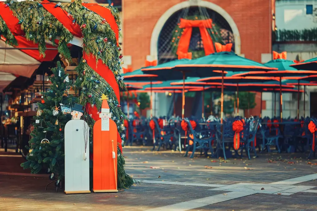 園内は「神戸クリスマスマーケット」で賑わい、各所に配されたクリスマスのディスプレイやイルミネーションが訪れる人の目を引いています。散策の合間に利用できるレストランやカフェでは、冬にふさわしい温かなメニューや期間限定スイーツ、特製ドリンクが用意され、心身を温める時間を提供します。