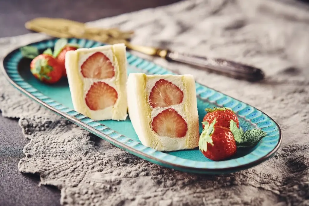- フルーツサンド(国産苺) ¥2,040 — 国産苺と甘さ控えめのクリームを組み合わせた苺サンド。