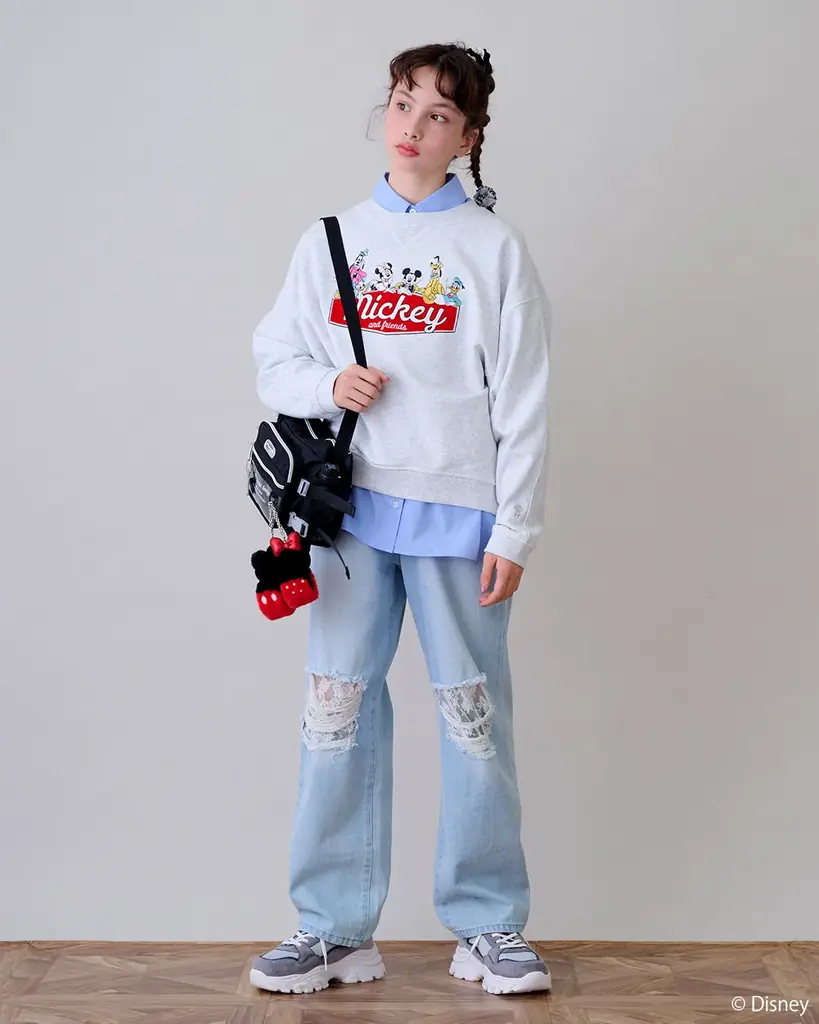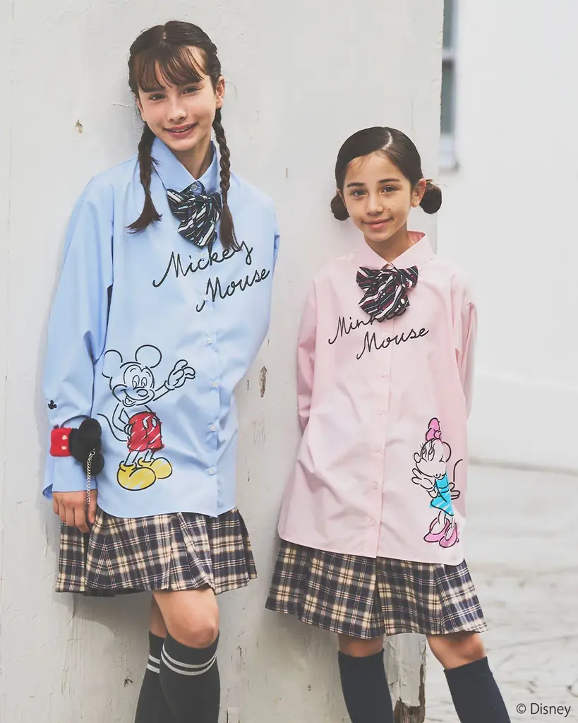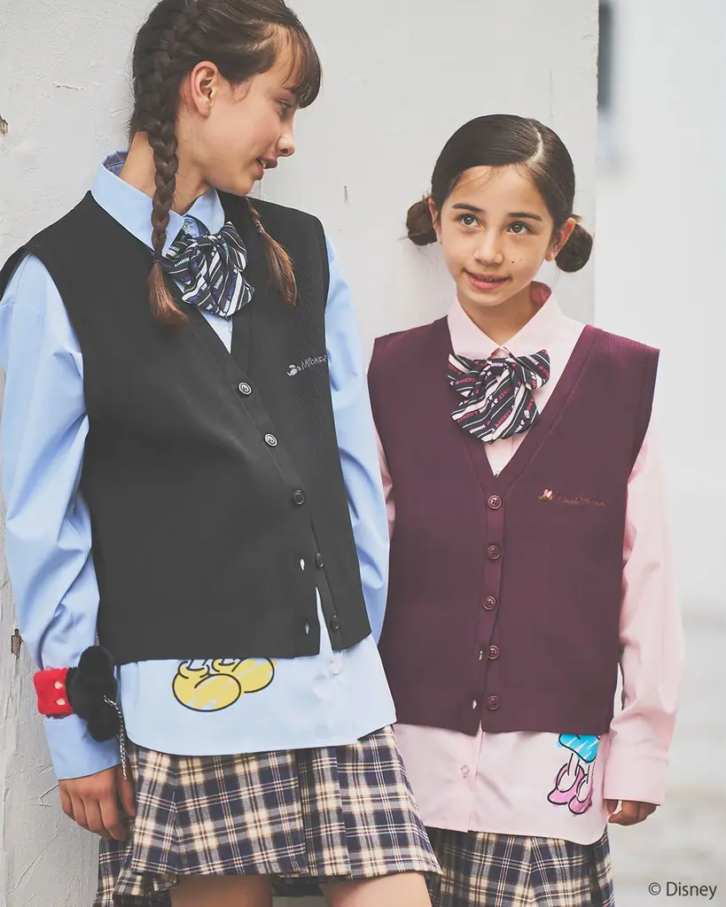 コレクションはフレンチテイストを基調とした上品なデザインに、ミッキーやミニーなどのディズニーキャラクターのかわいらしさを適度に取り入れた構成です。スクール風のきちんと感を残しつつ、着心地や日常使いのしやすさも重視しており、通学やお出かけまで幅広く対応する設計になっています。
