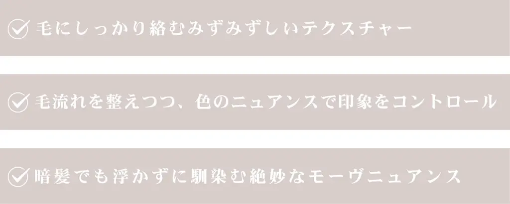 水感テクスチャーで毛1本1本を美しくコーティングするスタイリングブロウマスカラに、くすみすぎない抜け感のあるモーヴブラウンが加わりました。黄みにも赤みにも偏らない中立的なニュアンスで、淡く透ける上品な色味です。