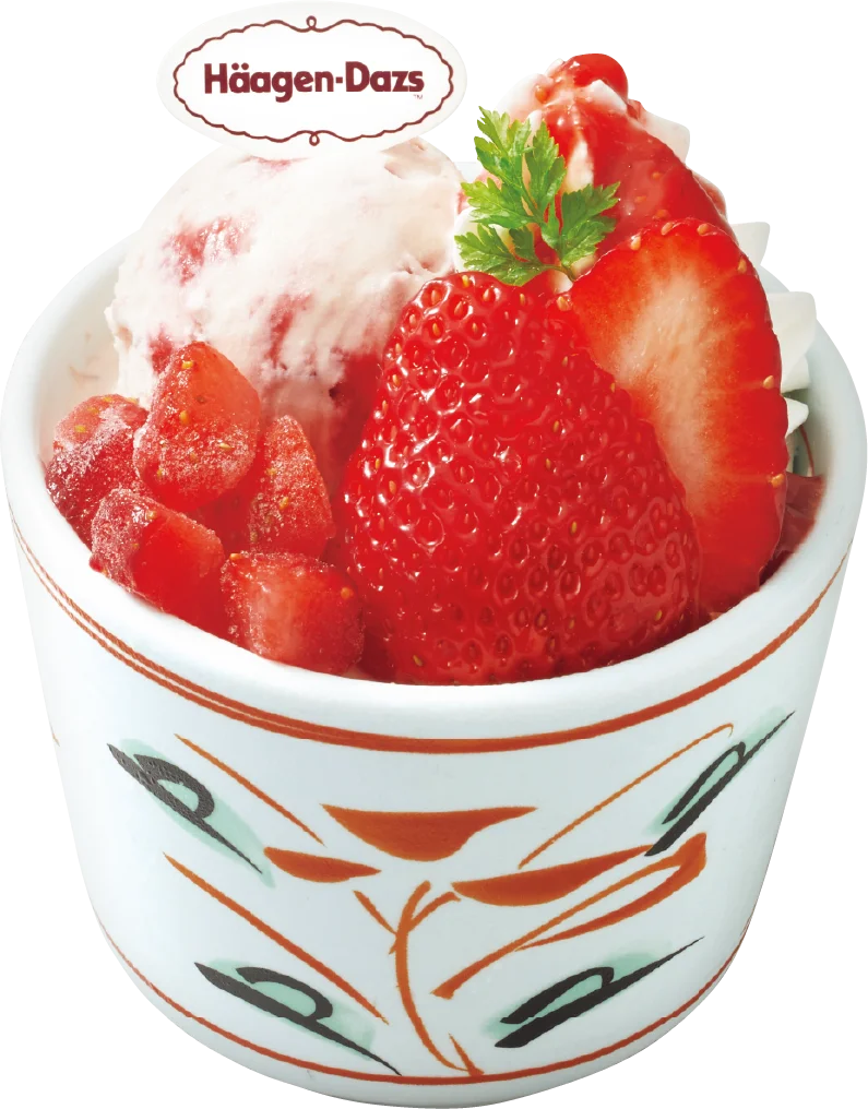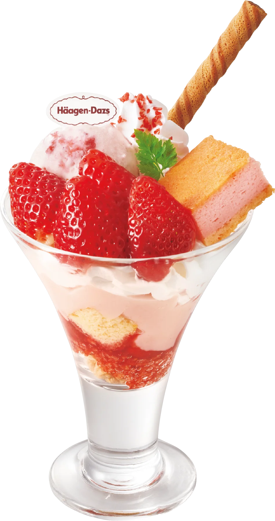 - ごほうびいちごパフェ 999円(税別)/税込1,098円:ハーゲンダッツ ストロベリー使用、一口サイズのいちごチーズケーキ、フレッシュいちご、フリーズドライいちご、なめらかクリームを重ねたパフェ。