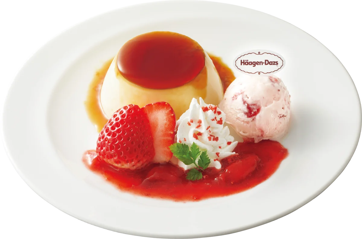 - いちごとプリンプレート 699円(税別)/税込768円:純喫茶コラボで好評の「昔ながらの店仕込みのプリン」とフレッシュいちごの組み合わせ。