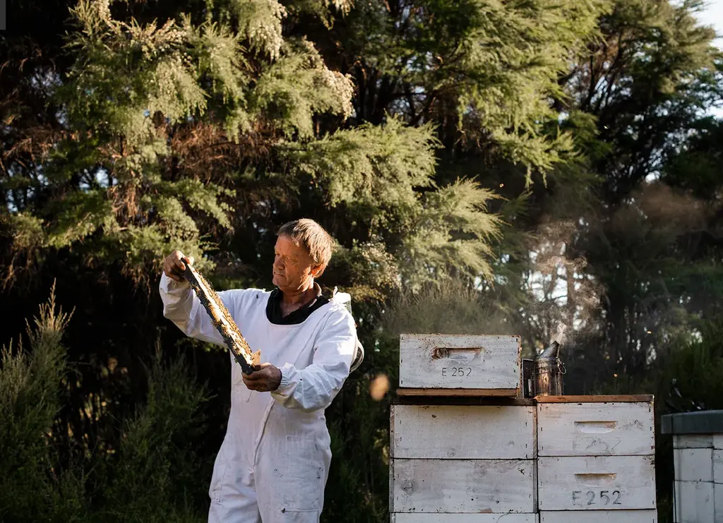- 養蜂 — イーストケープ地方の山々に巣箱を設置し、自然に咲くマヌカの花を蜜源に採取。