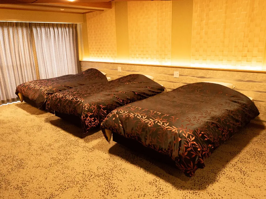 本客室は、栃木県内でも導入例が少ない希少なタイプとして位置付けられており、家族旅行や女子旅、友人グループの利用を想定した設計です。また、3名での利用だけでなく、2名でゆったりとベッドを独占する利用にも対応する柔軟性を持たせています。
