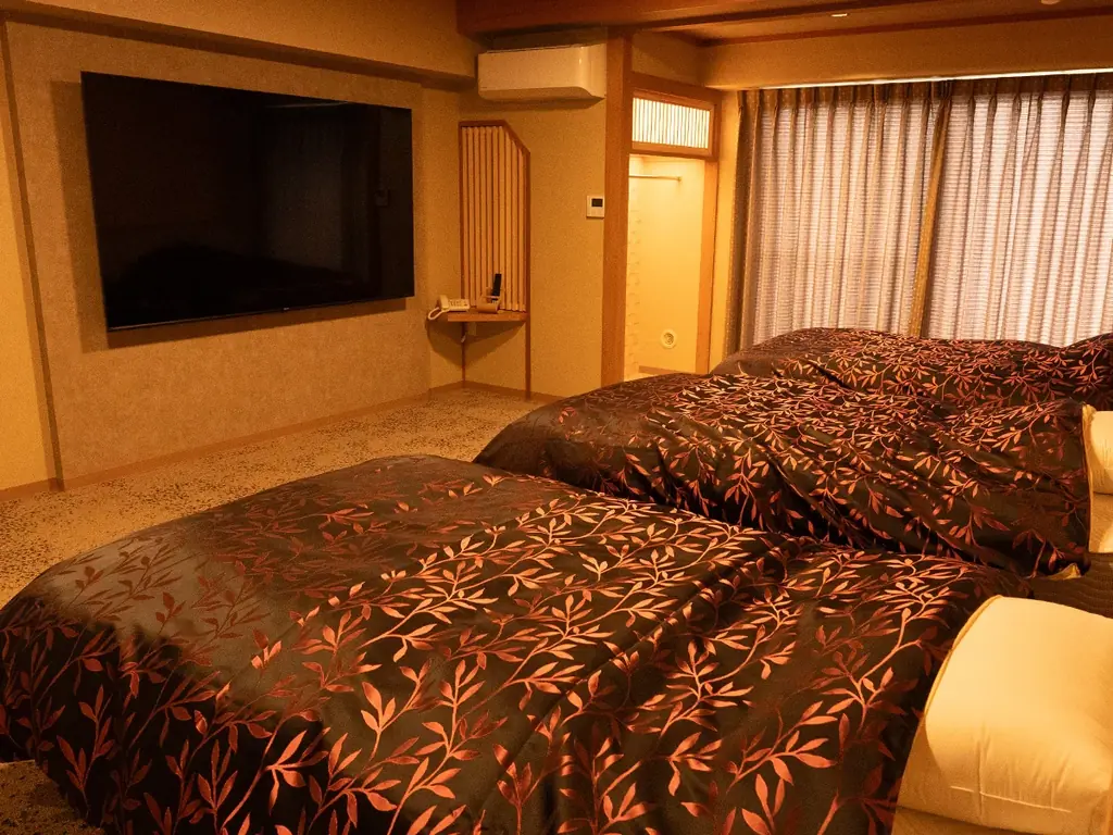 この客室タイプは、3名構成の家族旅行や友人グループに適するのはもちろん、ベッドを独占してゆったりと過ごしたいカップルや夫婦のニーズにも応える設計です。部屋の広さと大画面テレビの組み合わせは、滞在中のエンターテインメントを重視する利用者に向いています。