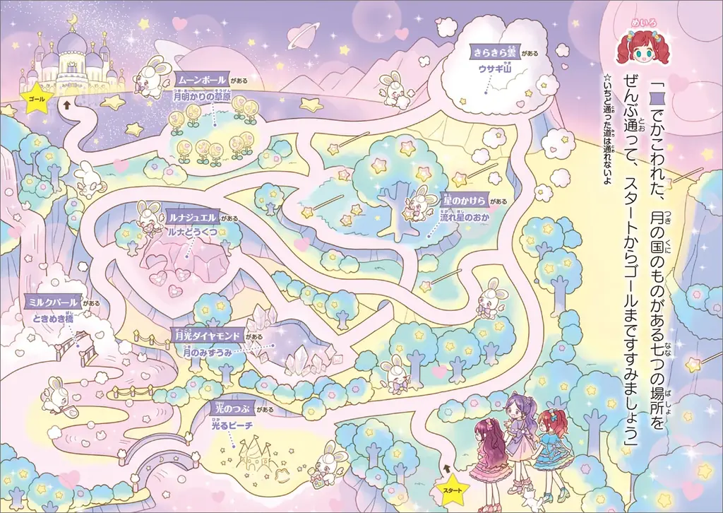 また、ストーリー内にめいろ・探し絵・暗号といったゲーム要素が組み込まれており、読了までの動線を自然に作ることで読書への抵抗を下げる構成です。最後には観音開きの大きなきせかえステージと、はってはがせるシールが付属します。
