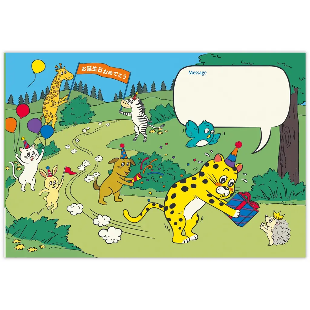 - 動く・ダダダ誕生日〈誕生お祝い〉(850319)1,518円(税込) — コミック風のダッシュ表現を用いたカード。ボタンを押すと足の部分が回転する仕掛け。バースデーソングは徒競走をイメージした軽快なアレンジ。動画:https://www.youtube.com/watch?v=CMiis_vrS3Y