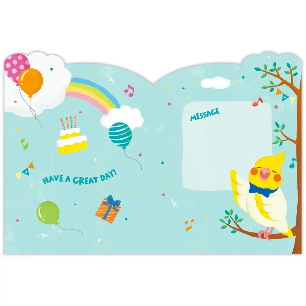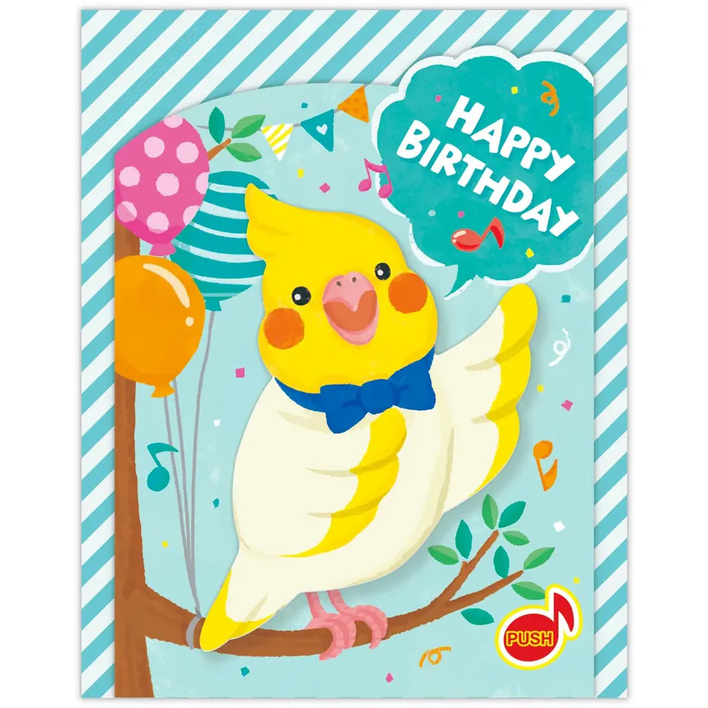- 動く・とり〈誕生お祝い〉(850265)1,518円(税込) — バースデーソングに合わせてオカメインコがぴょこぴょこ動く仕様。鳥の鳴き声入りで、視覚と聴覚の両方で祝福を表現。動画:https://www.youtube.com/watch?v=REovk7m0Q70