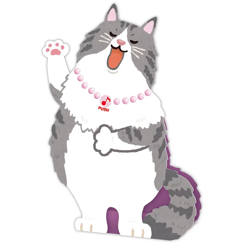 - オペラネコ〈誕生お祝い〉(850258)1,210円(税込) — 長毛種の猫がオペラ歌手を想起させる熱唱で祝う「熱唱系アニマルズ」シリーズ。ドイツ声楽を学ぶ歌手が音源を担当。動画:https://www.youtube.com/watch?v=50KV9E6LEhw