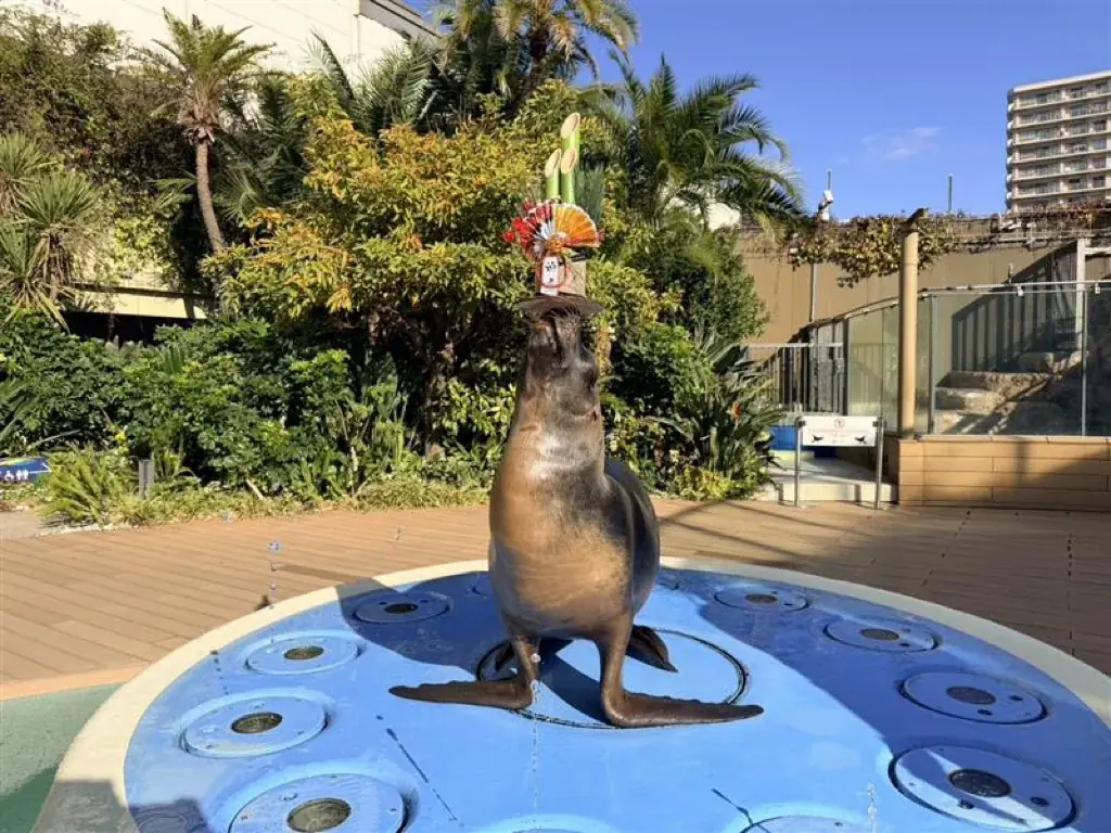 期間中の主な企画として、飼育スタッフが生き物の自然な姿や人との関わりを紹介する「いきものディスカバリー」を正月仕様のHappy New Yearバージョンで実施します。アシカのトレーニングにお正月らしい小物を取り入れるなど、縁起を担ぐ要素を加えた内容で提供されます。