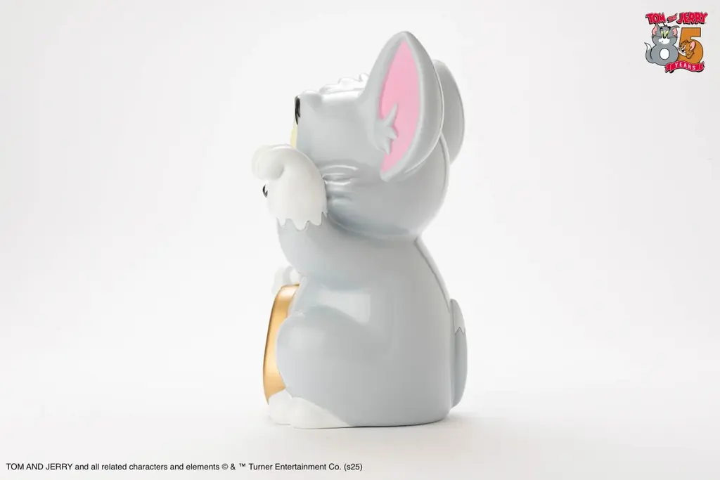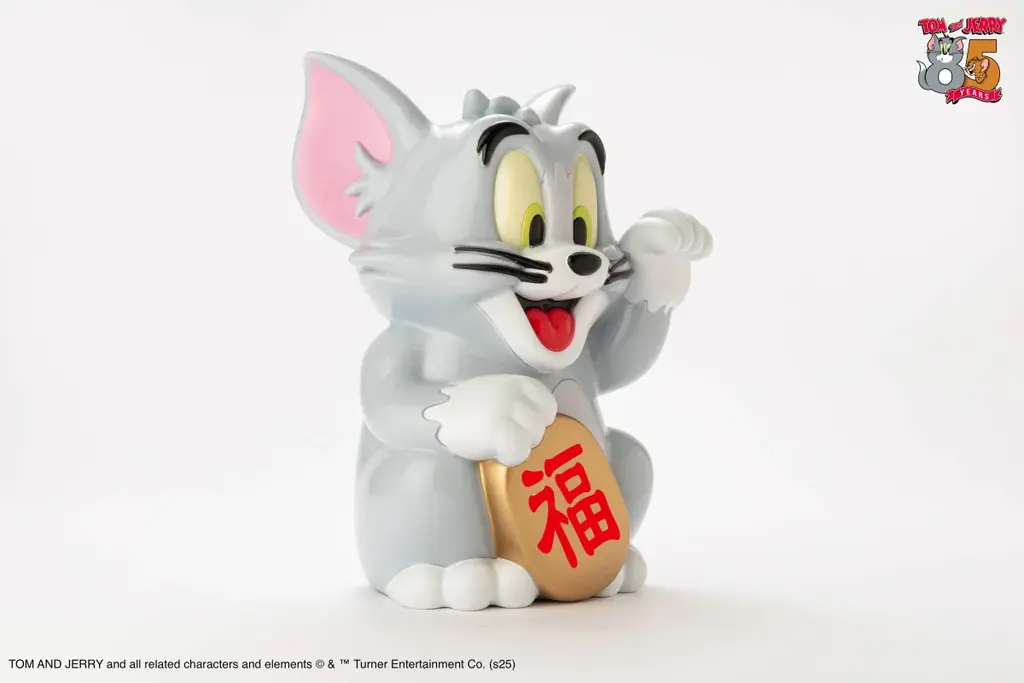 本商品は、右手に「福」文字入りの小判を持ち、左手を上げた招福ポーズのトムとジェリーをモチーフにしています。お揃いのポーズで並べることで縁起を担ぐ意匠とし、リビングやデスク周りのインテリアとしても映えるサイズ感に仕上げられています。