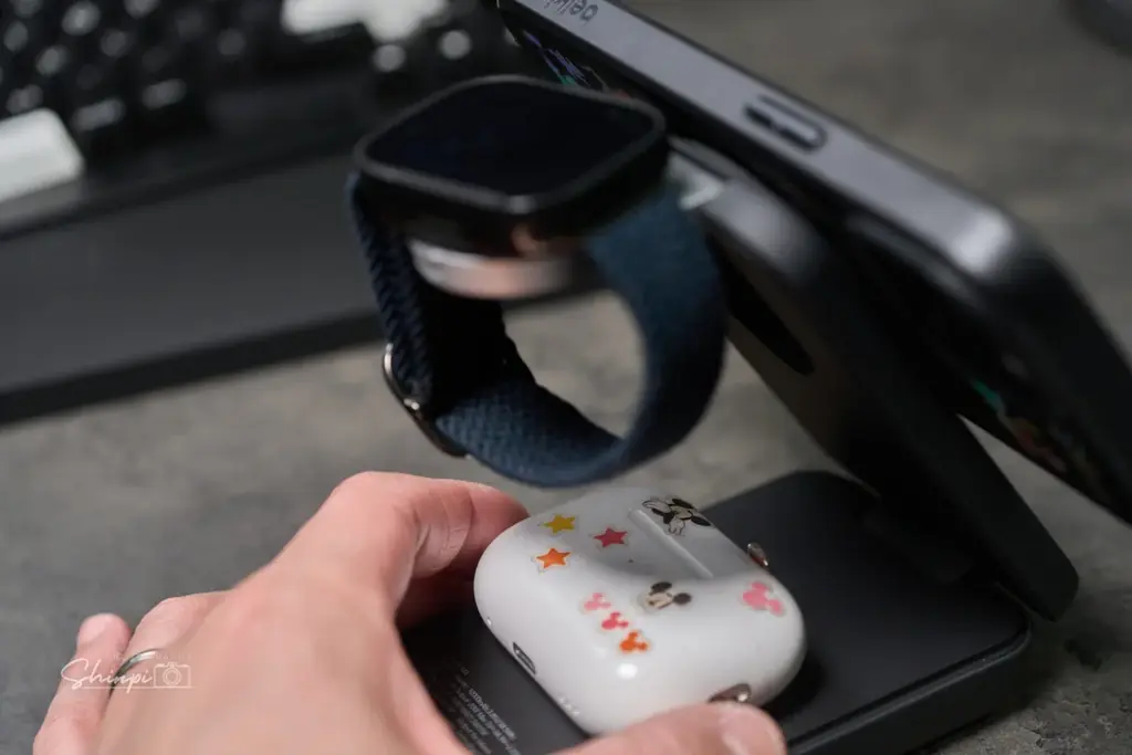 - 特長:4in1ワイヤレス充電器・ステーション、角度調整可能で首や背中の負担を軽減、10000mAhの大容量、iPhoneは15W急速充電、Apple Watchは3.5W急速充電