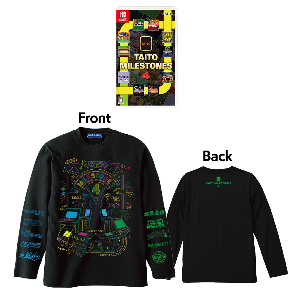 本日より予約受付が開始された『タイトーマイルストーン4』では、通常版のほか、ロングTシャツが付属する限定パッケージ『ファミ通DXパック』が用意されています。ロングTシャツは、アパレルブランド「EDITMODE」による本作オリジナルデザインです。