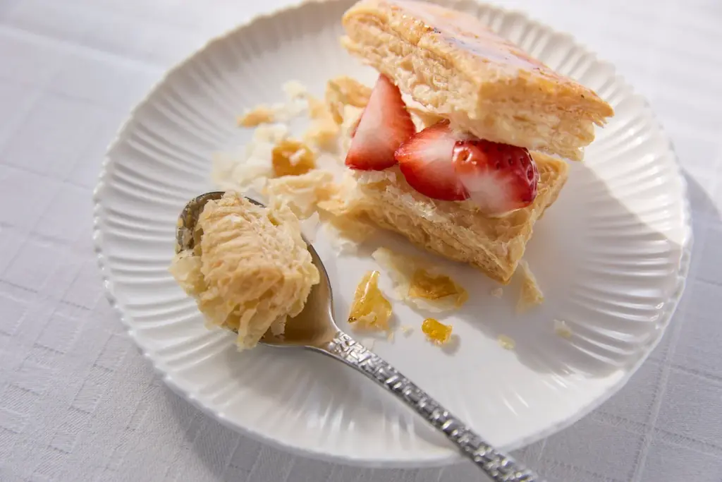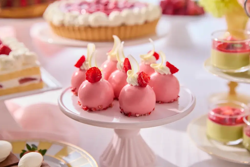 ホテルの伝統を受け継ぐレシピで、いちご本来の味わいを引き出すショートケーキやタルト、ミルフィーユなどを提供します。特にフレジェやストロベリーピスタチオタルト、ストロベリーミルフィーユといった名前のある一皿は、そのままホテルの定番として掲げられます。