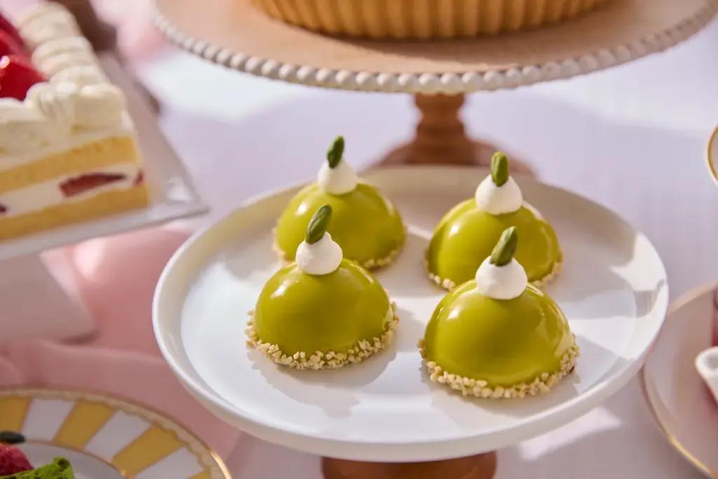 後半は春らしく軽やかで色彩豊かなメニューに一新されます。ピスタチオや抹茶を取り入れたスイーツが中心となり、見た目の華やかさと味の調和を目指した構成です。