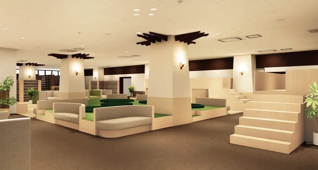 リニューアルオープン日:2025年12月23日(火)。中川コロナワールドは外装・内装を一新し、落ち着きのあるスタイリッシュな雰囲気を演出します。ラウンジはグレーとベージュを基調に柔らかな照明とファブリック素材を取り入れ、上質さとリラックス感を両立した空間へと整備されました。