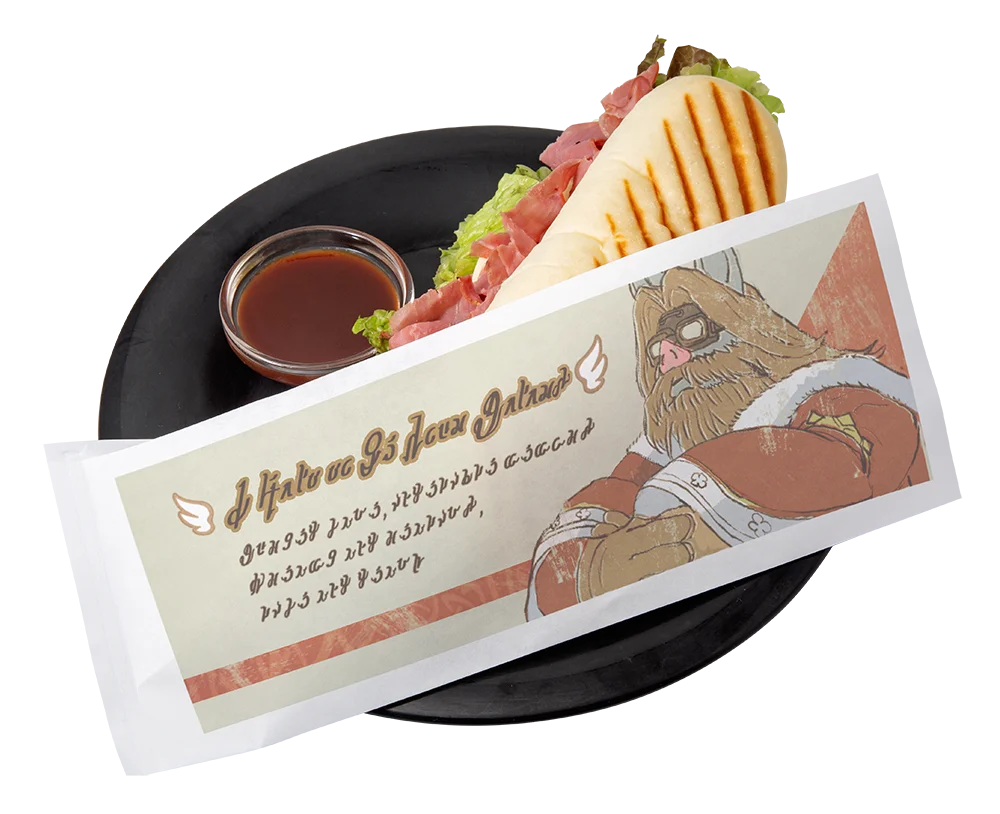 前期はフード7品、ドリンク7品が提供されます。登場キャラクターやゲーム内要素を大胆に再現した料理・飲料が並びます。
